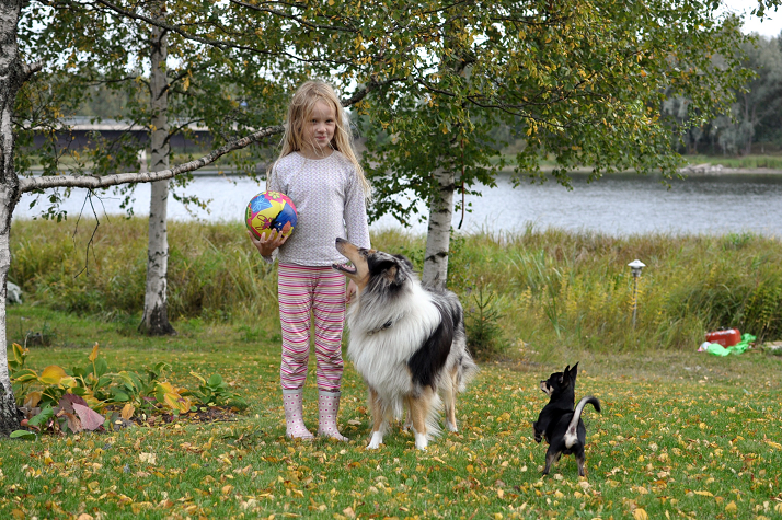 Poju oli ihan täpinöissään saamastaa nais-seurasta, ja vauhtikin oli sen mukaista. Lyyti on siis collie-narttu, yksi Romeon parhaista kavereista. Lyyti osaa hienosti varoa pienempää viipeltäjää!